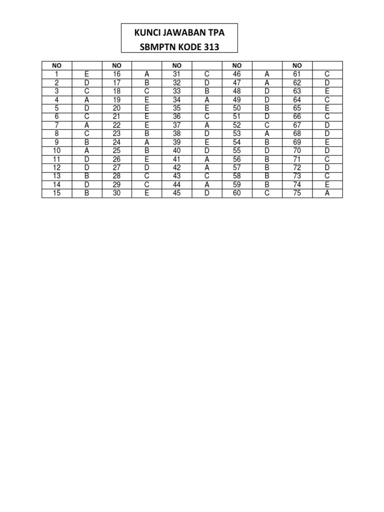 Kunci Jawaban SBMPTN TPA 313 from imgv2-2-f.scribdassets.com Sbmptn (seleksi masuk perguruan tinggi negeri) merupakan jalur seleksi masuk ptn dengan menggunakan nilai utbk. Brain out merupakan permainan asah otak dengan jawaban yang rumit , yang sama sekali tidak akan terbayangkan. Seleksi masuk perguruan tinggi pada jalur sbmptn sangatlah ketat, hal ini karena kita harus dituntut bisa bersaing dengan peserta lain yang. Soal dan kunci jawaban saintek sbmptn 2015 kodesoal 506full description. Mata pelajaran yang akan kita bahas adalah mata pelajaran matematik. Silahkan download atau cek seluruh kunci jawaban sbmptn 2015 pada preview file pdf (ukuran file 8,6 mb = 43 halaman) yang ada di posting ini. Jika adalah pembulatan bilangan ke satuan terdekat, maka nilai untuk adalah …. Prediksi soal utbk sbmptn tps (tes potensi skolastik) 2021 + kunci jawaban.