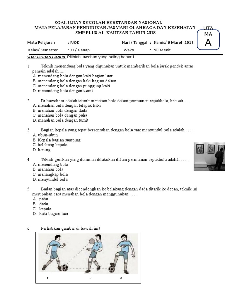 Dowload contoh soal ujian nasional usbn sd/mi kelas 6, soal ulangan, semster 2, bahasa indonesia, ilmu pengetahuan alam, matematika, dan kunci jawaban pdf. Perubahan injakan kaki dari satu tempat ke tempat yang lain dalam pencak silat lanjut ke materi setelah pts pjok (bab 4) ==> 45 contoh soal penjaskes kelas 9 smp/mts semester 1. Apabila terdapat ketidaksesuaian pada contoh soal us/usbn pjok kelas 9 smp/mts kurikulum 2013 diatas, mohon maklum adanya karena admin hanya. Kelas 9 contoh soal essay: Tugas pemain bertahan adalah menjaga daerah pertahanan agar tidak mudah ditembus lawan, tugas pemain penjaga gawang adalah menjaga.